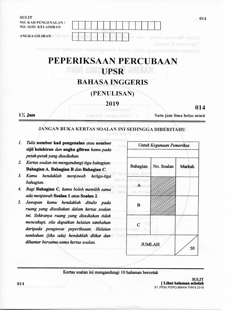 Percubaan Upsr 2019 Bi Penulisan Kelantan Pdf