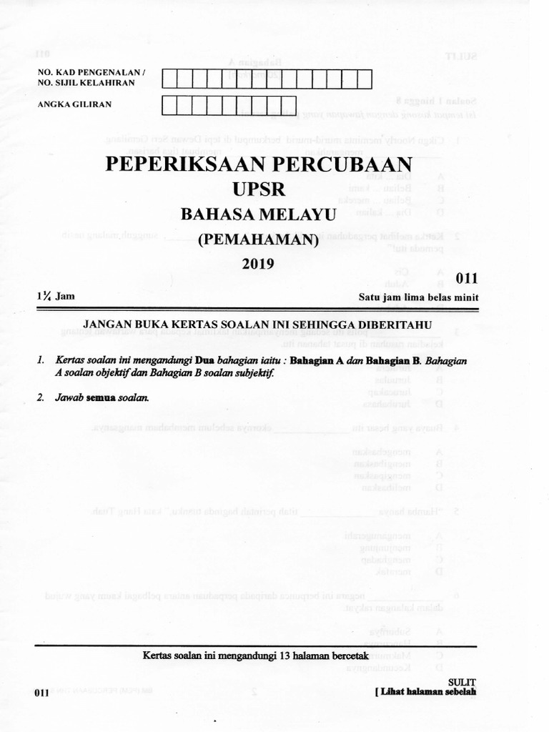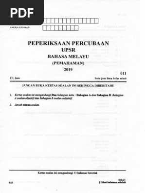 Percubaan Upsr 2019 Bm Pemahaman Kelantan Jawapan Pdf